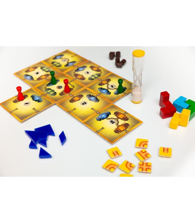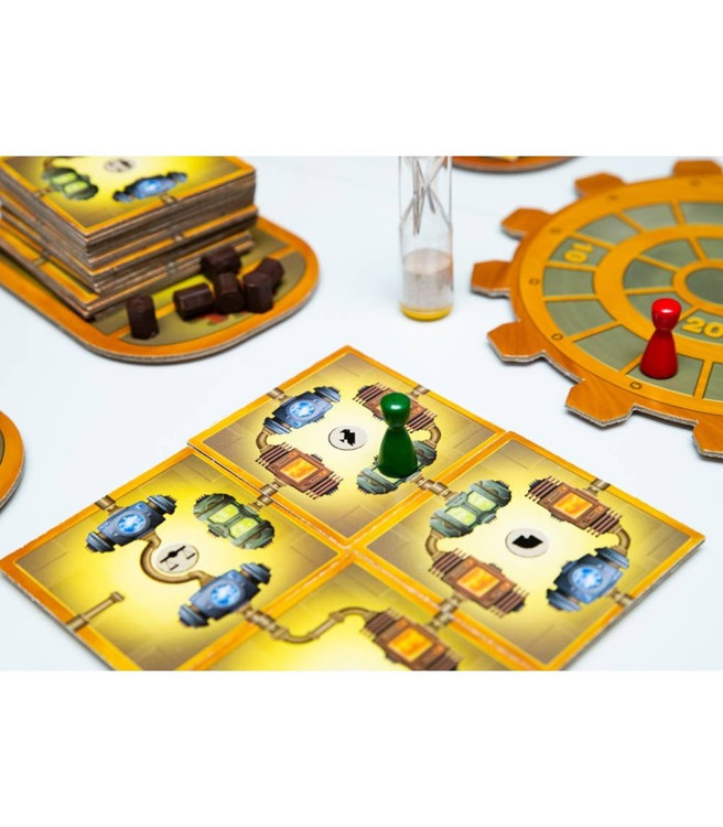 الف) قراردادن کاشی:کاشی معما را پشت و رو کنید تا از سمت سلول های انرژی به رو باشد.آن را در جای خالی و در کنار دستکم یک کاشی موجود روی میزبازی بگذارید.هر کاشی که بر روی میز بازی قرار بگیرد، یک یا چند سیستم مجرا را گسترش می دهد. یک سیستم مجرا از سلول های انرژی که از راه لوله کانال به هم وصل شده اند تشکیل شده است.یک سیستم مجرا باز درنظر گرفته می شود، اگر دستکم مسیر یک لوله کانال باز باشد.یک سیستم مجرا بسته در نظر گرفته می شود، اگر مسیر همه لوله های کانال بسته باشد.