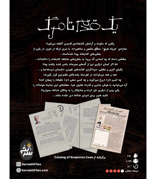 آيا ميتوانيد با هوش جنايي و قدرت تحليل خود، معمّاهاي اين جنايت هولناک را يکي پس از ديگري حل کرده و جنايتکار را به چنگال عدالت بسپاريد؟ شايد هنوز براي اجراي عدالت دير نشده باشد...