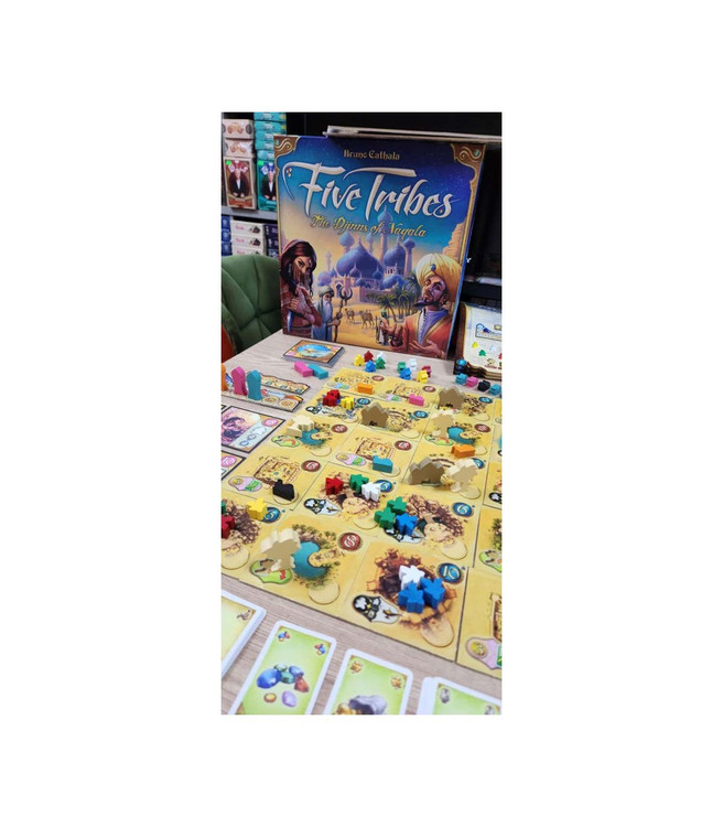 در واقع بازیکنان در بازی Five Tribes باید با کمک قدرت های هر قبیله و همچنین کارت های جن، زمینهای مختلف بازی رو تصاحب کنند و شترهای خودشون رو در زمین تصاحب شده قرار بدند.