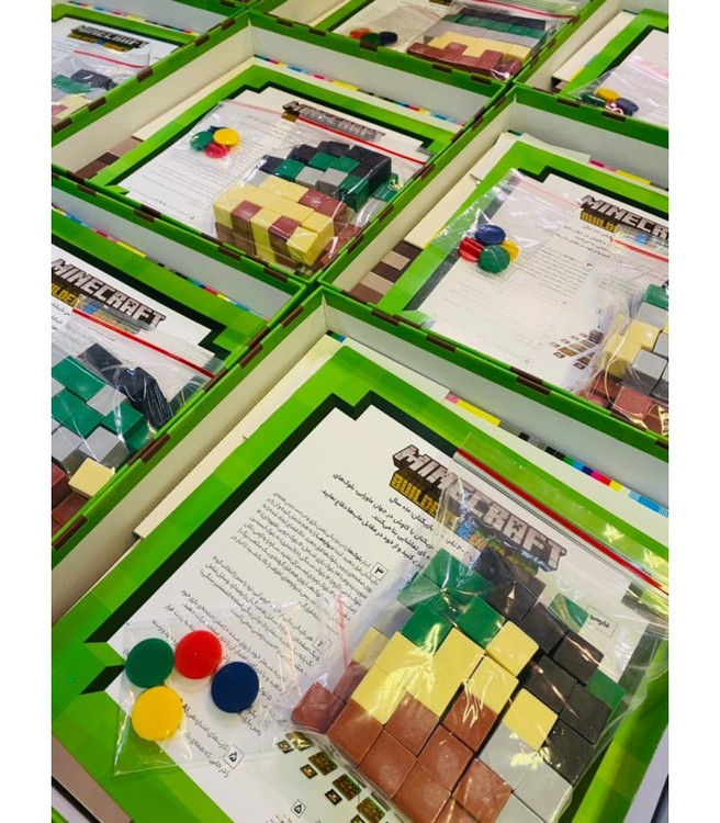 انبار بلوک ها را در نزدیکی زمین بازی و در دسترس همه ی بازیکنان قرار دهید. ابتدا دیواره ها را به هم متصل کرده و آن را بر روی صفحه ی زیرین بلوک ها قرار دهید. حالا فضای ایجاد شده را به صورت رندوم با 64 بلوک بازی شامل: 16 بلوک چوبی (قهوه ای)، 14 بلوک شنی (کِرِم)، 12 بلوک سنگی (خاکستری)، 10 بلوک آبسیدین (مشکی) و 12 بلوک زمردی (سبز) پر نمایید. سازه را به آرامی تکان دهید تا تمام بلوک ها روی هم قرار گرفته و یک مکعب بزرگ را تشکیل دهند. سپس دیواره های اطراف را بالا بکشید تا انبار در دسترس همه قرار گیرد.