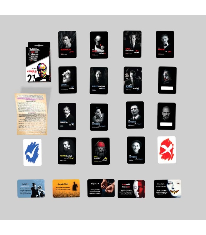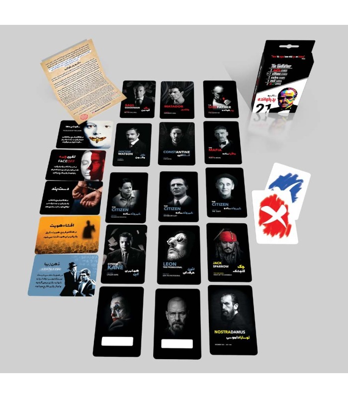 دارای 18 کارت ميباشد ( 3 کارت مافيا، 7 کارت شهروند، 1 کارت مستقل، 2 کارت بی نام و 5 کارت خروج ) مجموعه کارتها براي بازي 11 نفري به همراه گرداننده به روش پدرخوانده پلتفرم فيلم نت طراحي و توليد شده است :براي آموزش روش بازي و توضيح نقش ها ، برگه راهنما درون محصول مفصل توضيحات را ارائه ميدهد - قصد اوليه طراحي و توليد اين محصول صرفا کمبود کارت کامل و مقرون به صرفه در بازار بود ، در نتيجه پس از استقبال علاقه مندان و دريافت نظرات متعدد ، اقدام به توليد اين محصول نيز نموديم . جنس کارتها گلاسه 145 گرمي دورو چاپ با روکش سلفون مات بوده که مقاومت آنها را چند برابر مي کند