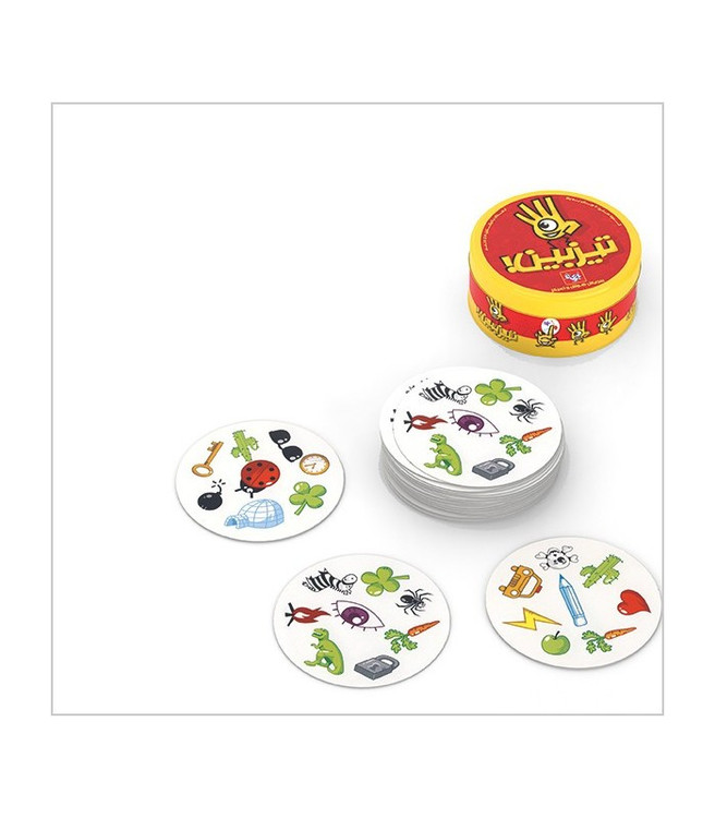 تیزبین یک بازی کارتی است که در هر کارت 8 تصویر وجود دارد. بین هر دو کارت، فقط یک تصویر مشترک وجود دارد. بازیکنان باید با تیزبینی و سرعت عمل خود بین کارتهای بازی تصویر مشترک را بیابند و زودتر از بقیه نام آن تصویر را اعلام کنند. آن تصویر را تشخیص دهید و برنده شوید! برای انجام این بازی به چشم های تیزبین و کمی هم سرعت عمل نیاز دارید. جذابت این بازی در آن است که شما این بازی را می توانید به 5 روش مختلف انجام دهید.