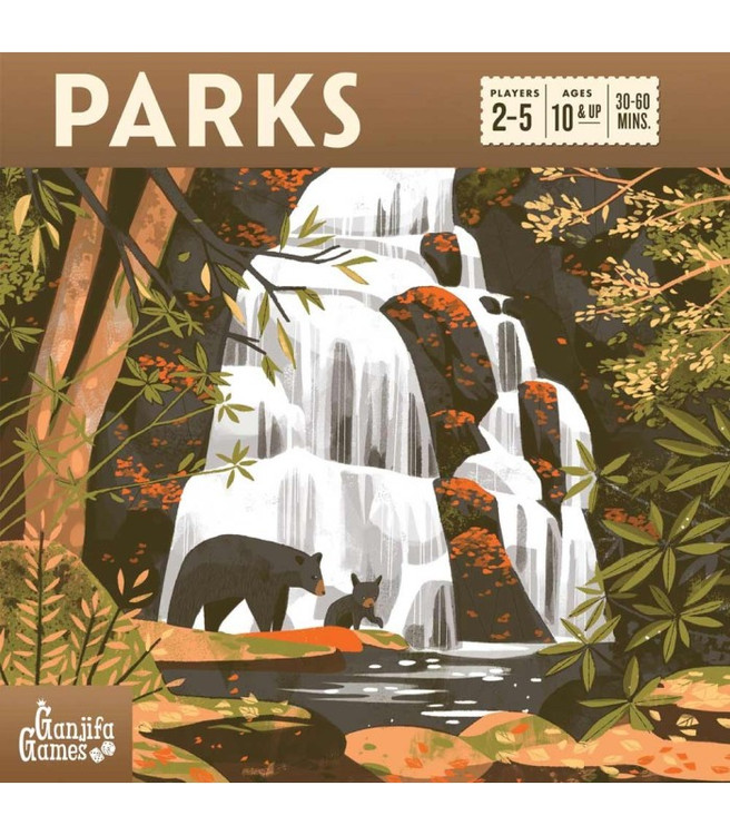 "پارکها"، بزرگداشتِ پارکهای ملّیِ کشور آمریکاست و در طرّاحیش، از تصاویر زیبای مجموعهی چاپیِ "Fifty Nine Parks" استفاده شده؛ بازیکنها، هدایتِ دو تا "گردشگر" (Hiker) رو به عهده دارن که در طول بازی، مسیرهای طولانی رو زیر پا میذارن تا گردشگاهها رو ببینن، از تماشای حیات وحش لذّت ببرن، عکس بگیرن و از پارکهای ملّی بازدید کنن...