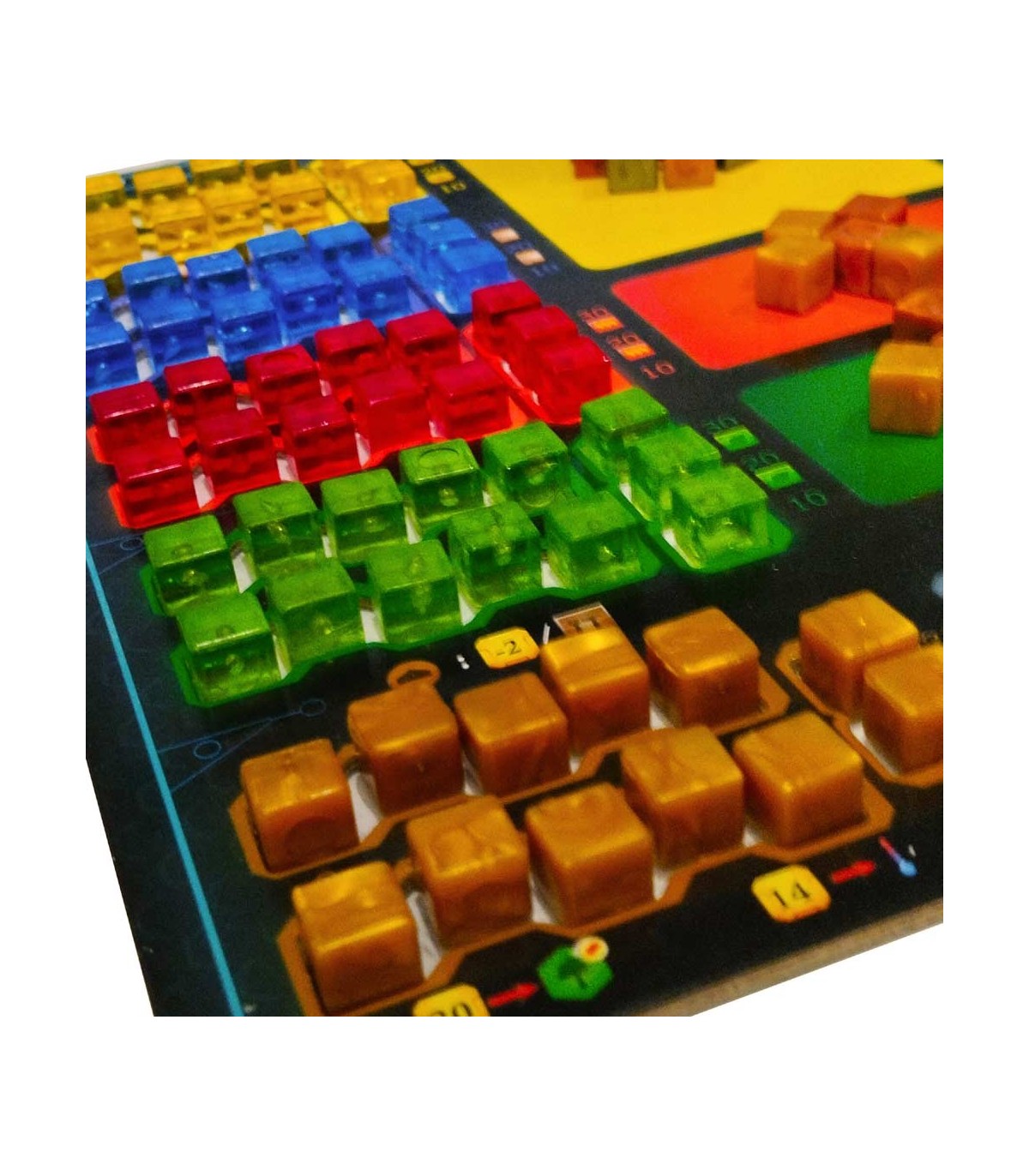 پس از پایان مراحل آمادهسازی، در بخش بالا - سمت راست صفحهی بازی، 27 مکعب مِس و 3 مکعب شخصی از یکی از رنگهای بیاستفاده بگذارید.