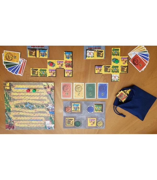 - 12 شمارنده (مهرههای استوانهای)، هر بازیکن یک شمارنده برای صفحه امتیاز شماری و یک شمارنده برای کاشی شروعش دارد.